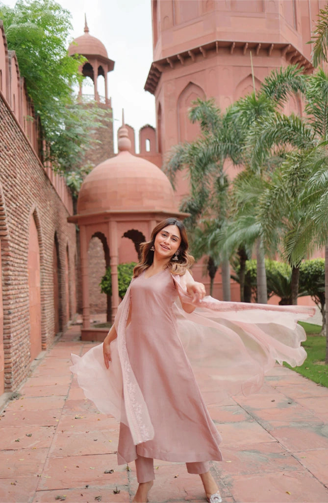 Chanderi Suit with Embroidered Pants and Dupatta
